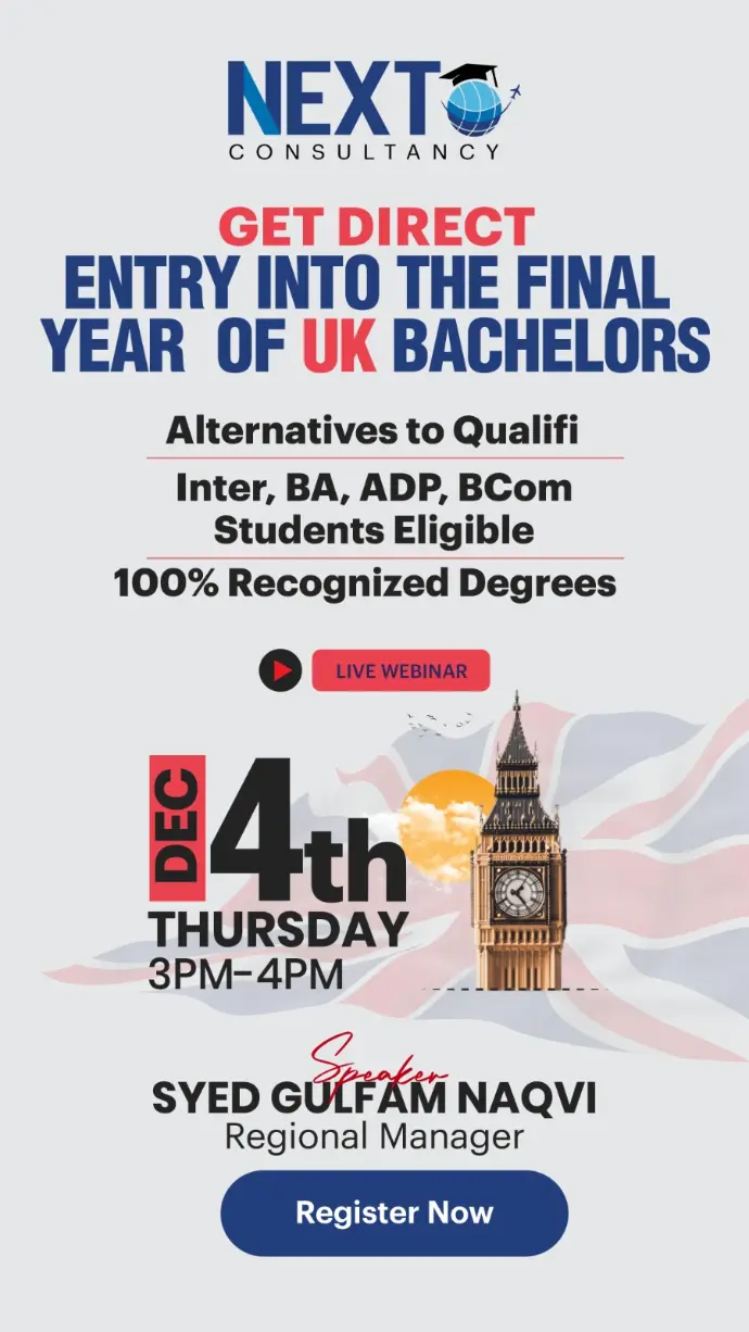 Apply now for Final Year Entry in a UK Bachelorโs with Next Consultancy and fast-track your education journey!